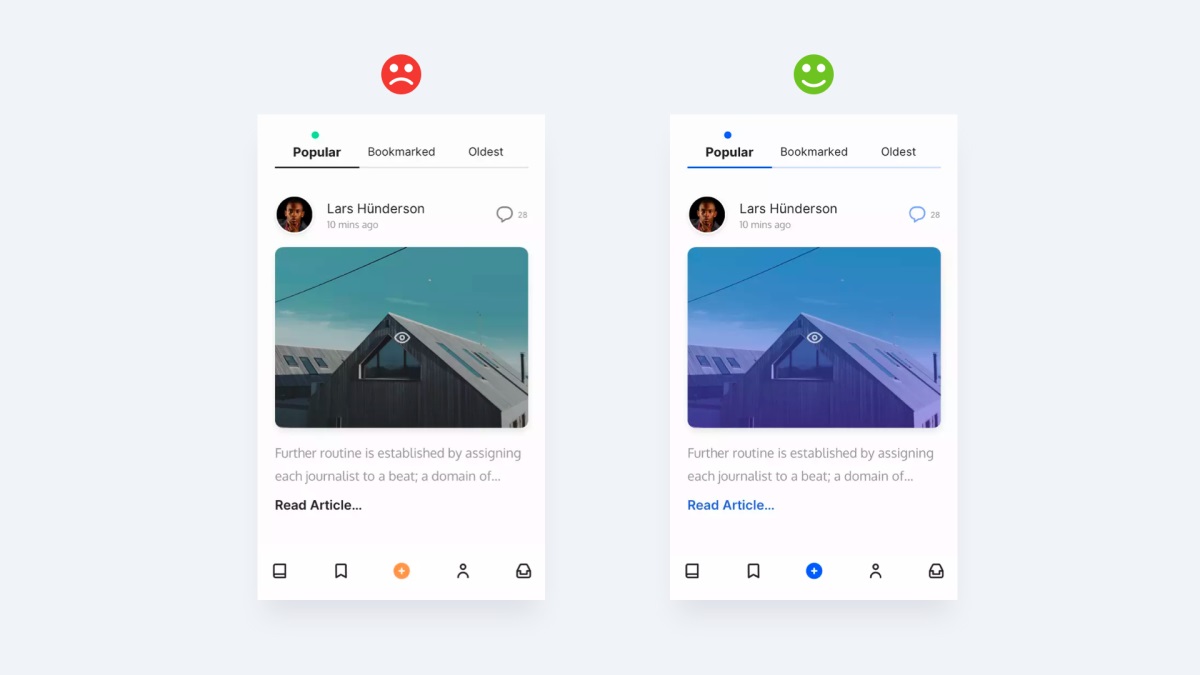 每种颜色都有一个视觉权重,这有助于在内容中建立层次结构。通过使用颜色的深浅,为元素赋予不同的重要性。如果可以的话,你甚至可以采用两到三种颜色: